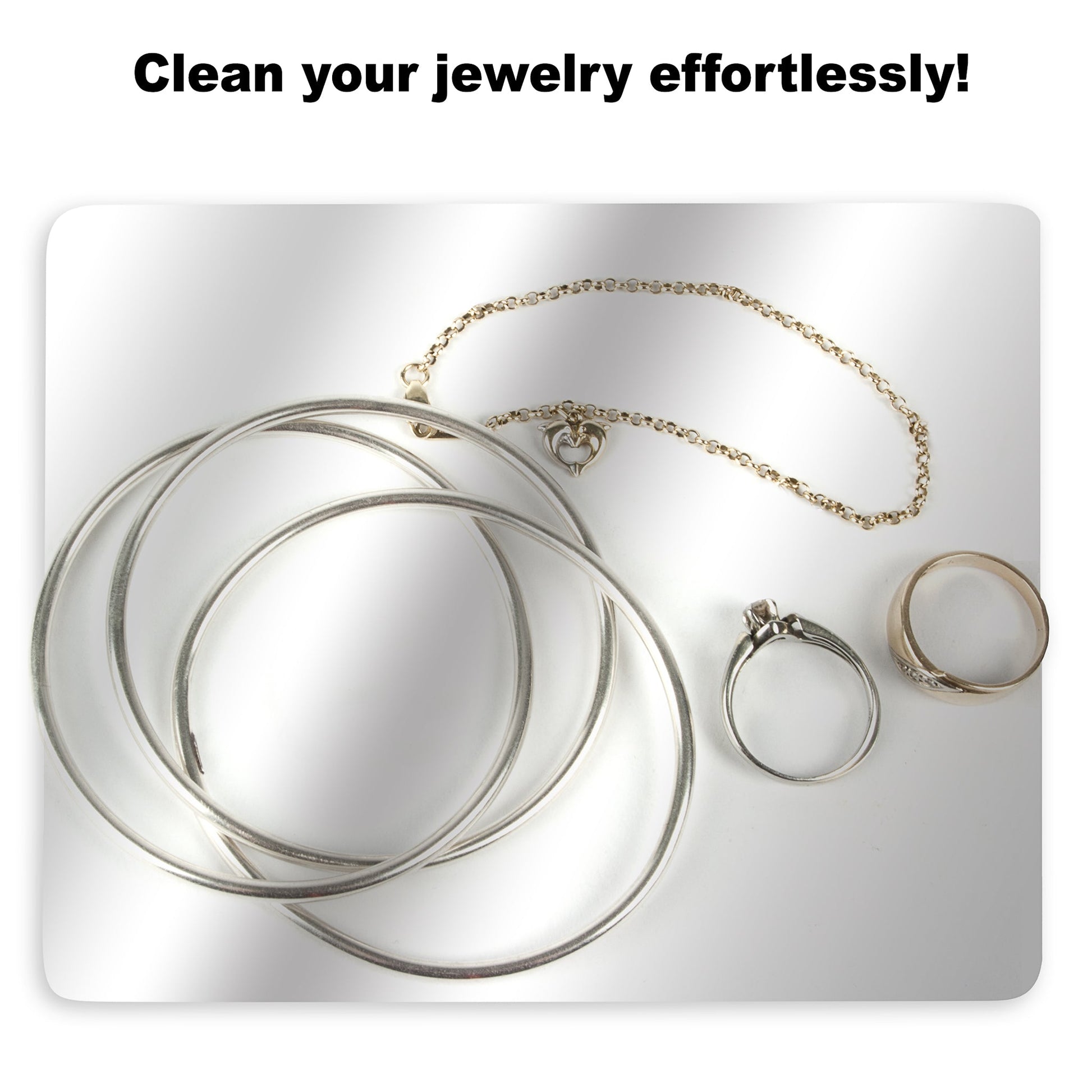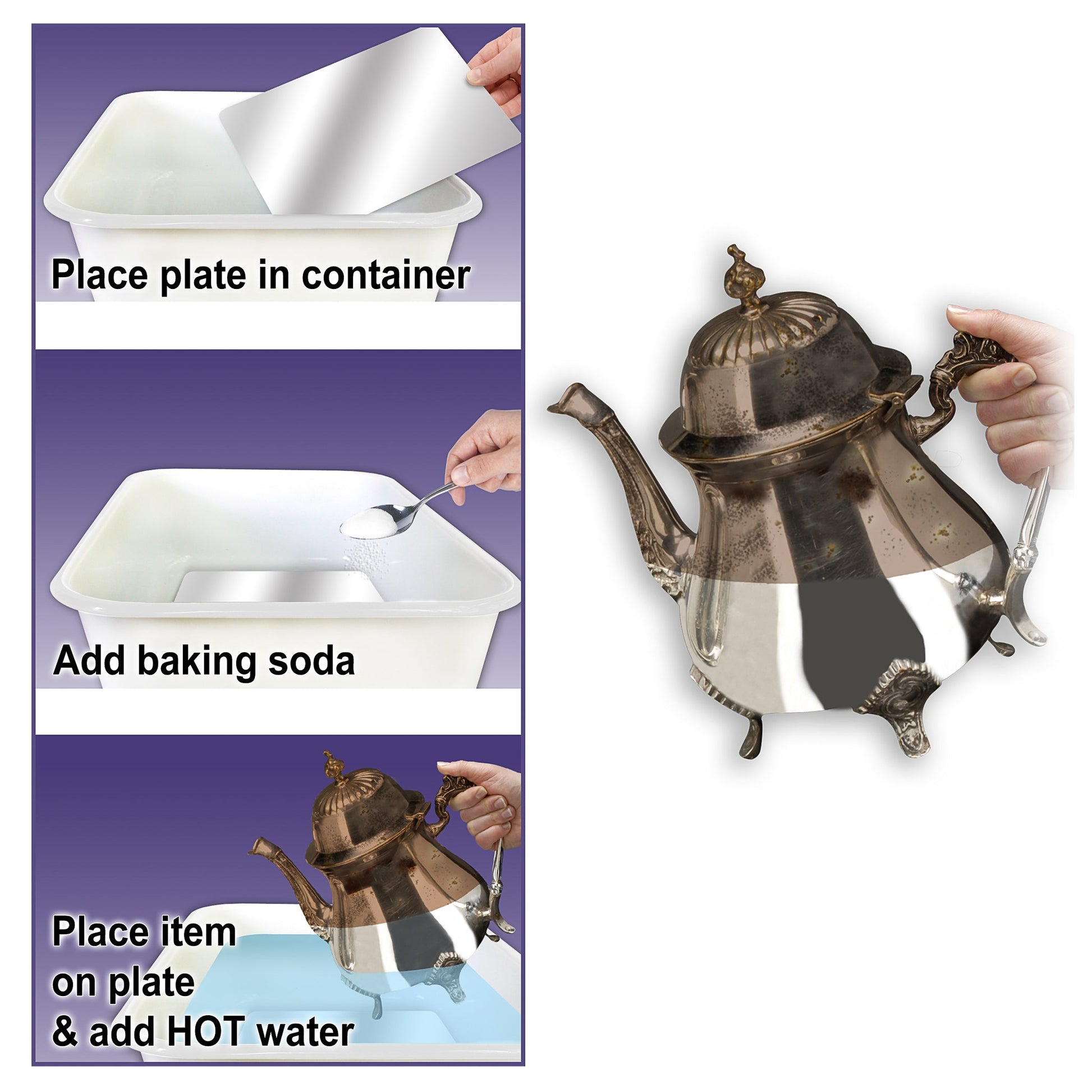 Used in museums worldwide to polish prized collections, this amazing electrolytic cleaning plate removes tarnish instantly. Silver Magic’s non-abrasive cleaning method gets rid of tarnish from silver, gold, copper and platinum without scrubbing or polishing. Placing items in contact with the plate along with baking soda and HOT water creates an electrolytic reaction that draws the tarnish away in seconds! It’s fast and easy to use! Silver Magic is environmentally friendly and contains no harmful chemicals. It can be used over and over, and it never wears out!